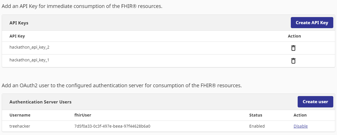 Congratulations, you now have fully set up your FHIR server! Go to the Overview page and click on "Samples with API Key" button to see some sample requests, and use "API Development" page to explore and try all available APIsYou can find some query examples here.